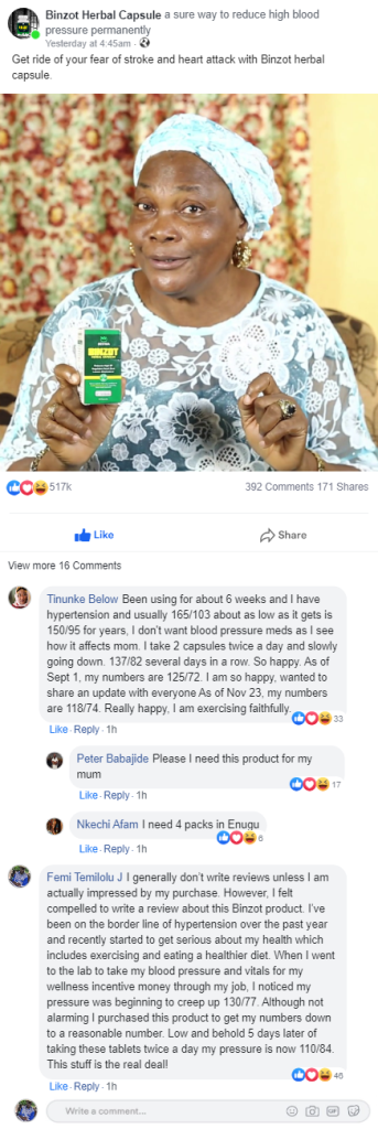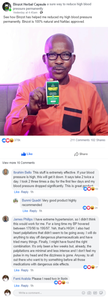 Using BINZOT HBP HERBAL CAPSULES will lead to Normal and Healthy Blood Pressure Levels, Stronger Heart, No More Heart Complications and Experience complete Well-Being, Confidence, Empowered, and In Control of Your Health.